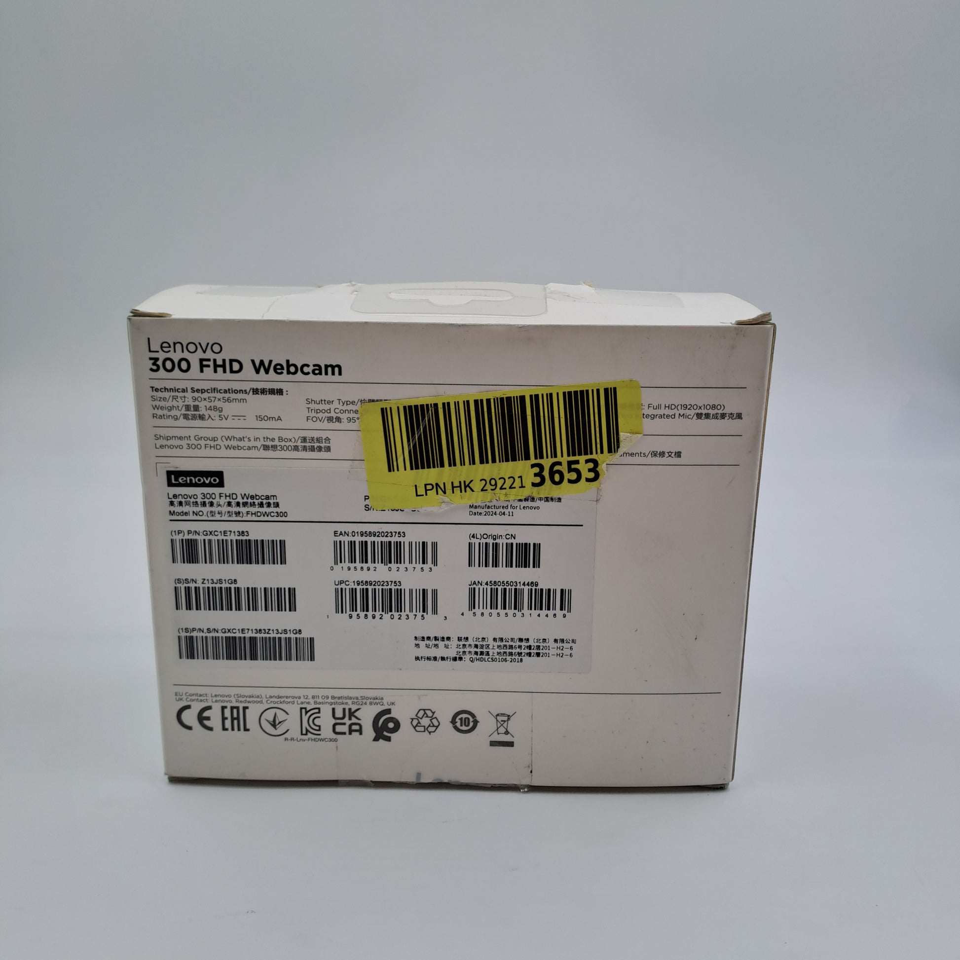 Webcam Lenovo modello 300 FHD, ideale per videochiamate, riunioni online e streaming. Design compatto con clip integrata per il fissaggio su monitor o laptop.