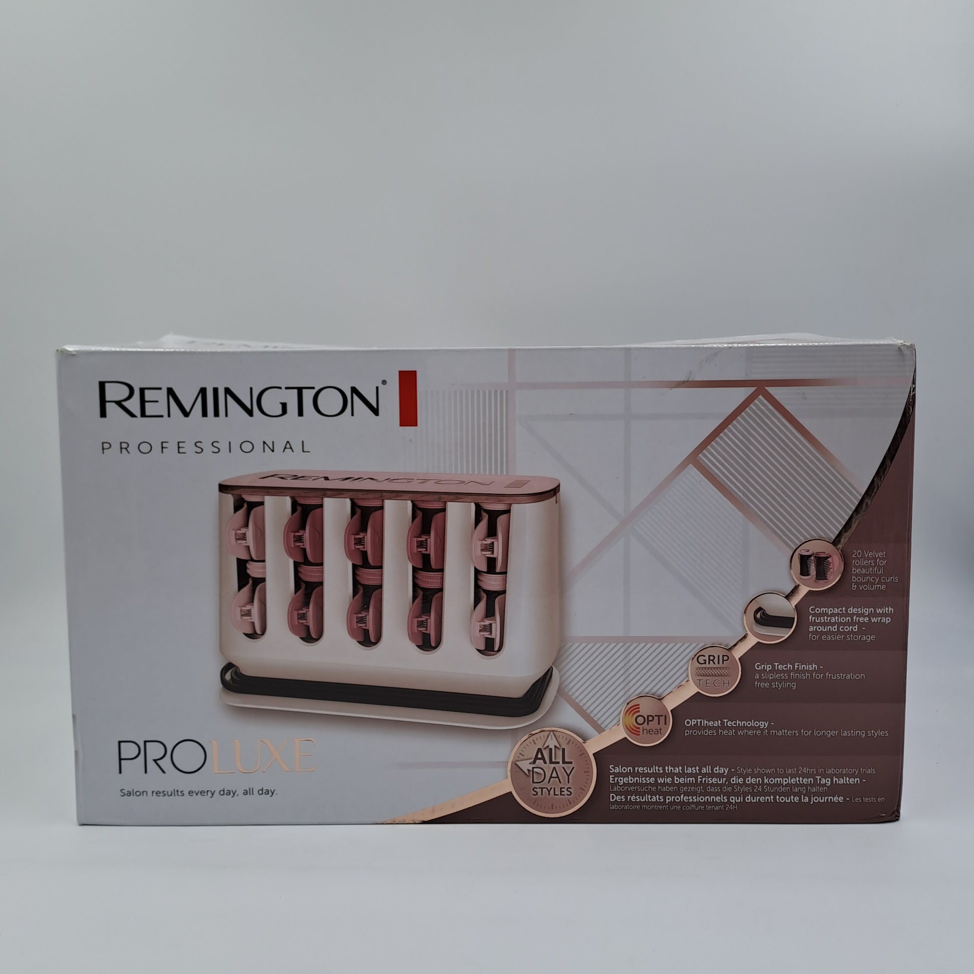 The Remington ProLuxe is a set of heated electric curlers designed to deliver defined, voluminous and long-lasting curls , with professional results right at home. Thanks to OPTIheat technology, heat is distributed precisely where it's needed most, helping to maintain the style longer.